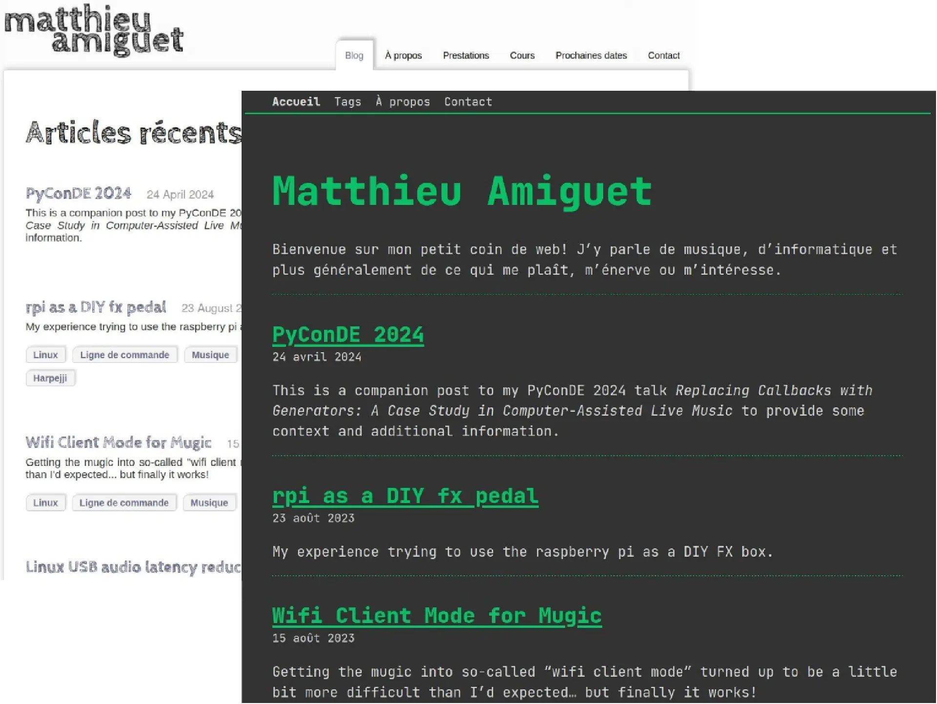J’ai créé ce site en 2009 à l’aide de MODx, puis je l’ai migré à un CMS fait sur mesure en Django en 2011.